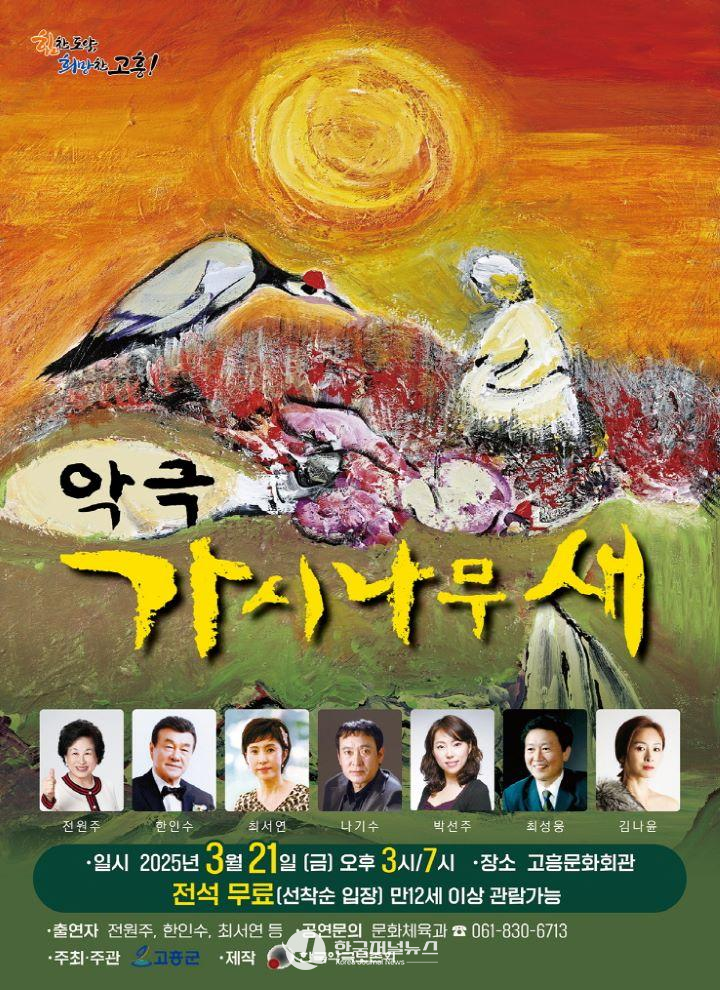 이번 공연은 고흥군민의 문화 향유권 신장과 문화접근성을 높이기 위해 기획됐으며, 만 12세 이상이면 누구나 무료로 관람할 수 있다.