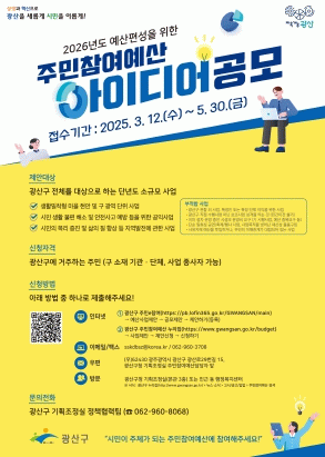 주민참여예산제에 대한 자세한 안내는 광산구 기획조정실로 문의하면 된다.