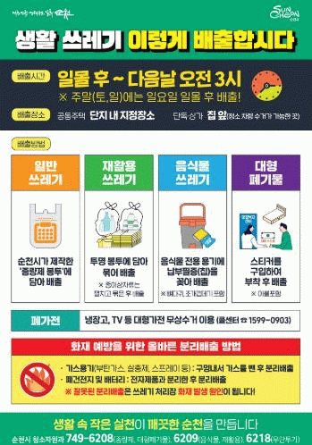 또한, 쓰레기 처리장에서 발생할 수 있는 화재를 예방하기 위한 ‘가스용기 및 배터리 분리배출 방법’과 담당 부서 연락처 등의 유용한 정보가 담겨 있다.