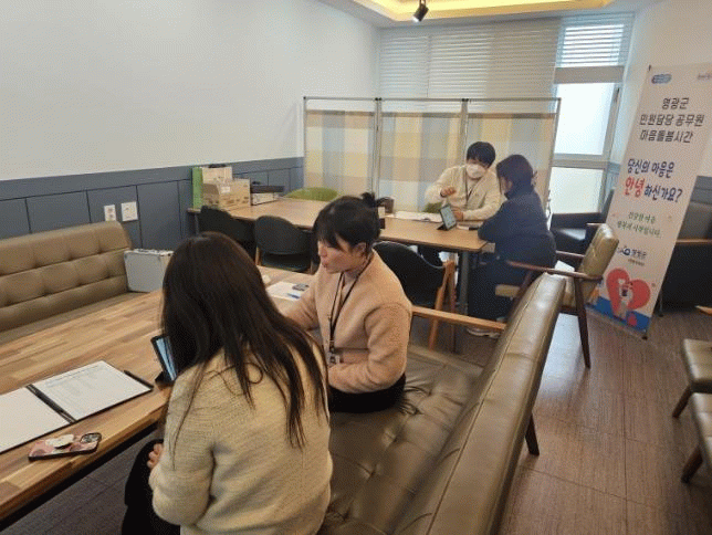 아울러, 영광군은 본청 방문이 어려운 읍·면 직원을 위하여 영광읍사무소를 시작으로 5월 8일까지 일정별로 읍·면사무소에 직접 찾아가는 순회 심리상담을 실시할 계획이다.