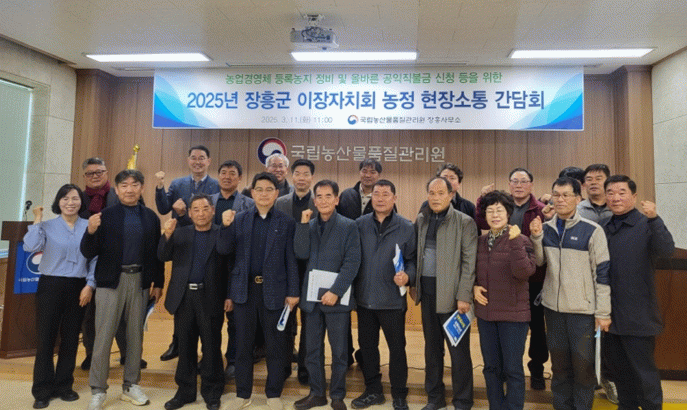 이날 간담회에서는 지난해 직불금 신청과정에서 올바르게 신청하지 못한 사례를 부적합 유형별로 분류하여 공유하고 장흥농관원과 장흥군 이장자치연합회가 힘을 모아 공익직불금을 올바르게 신청하는 문화조성을 위해 읍·면 이장자치회 및 생산단지 등에 순회 교육 등 협업을 추진하기로 했다.
