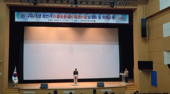 군 관계자는 “이번 설명회를 통해 공동급식 종사자의 위생관리 역량을 높이고, 마을공동급식 사업이 체계적으로 운영될 수 있도록 적극 지원하겠다”라며, “마을 주민들에게 안전하고 균형 잡힌 급식을 제공하기 위해 최선을 다하겠다”라고 밝혔다.