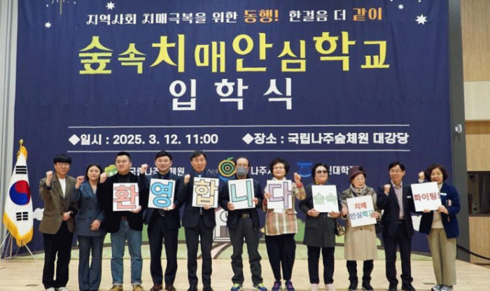 전라남도 나주시는 전날 국립나주숲체원 대강당에서 ‘2025년 숲속 치매안심학교’ 입학식을 개최했다고 13일 밝혔다.