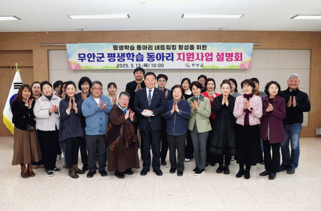 평생학습 동아리는 대표자를 포함한 10명 이상으로 구성되며, 구성원의 90% 이상이 무안군민으로서 음악, 교육, 농업, 체육 등 다양한 분야에서 활동하고 있다.