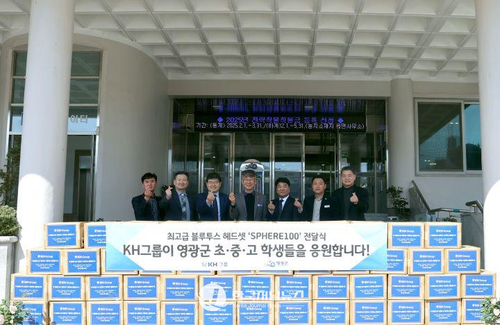 KH그룹 관계자들은 송광민 부군수, 정병국 교육장에게 학생복지 및 지역인재 육성을 위해 힘써달라며 헤드셋을 전달했다. KH그룹 미래물산에서 제작ㆍ판매하는 블루투스 헤드셋 4,005개는 영광 관내 초ㆍ중ㆍ고등학생 4,005명에게 전달할 계획이다.