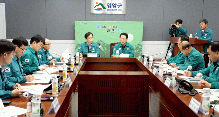 김영록 지사는 이어 영상회의가 끝나자 마자 영암군 재난대책본부 현장을 방문해 방역대책 추진상황을 점검했다.