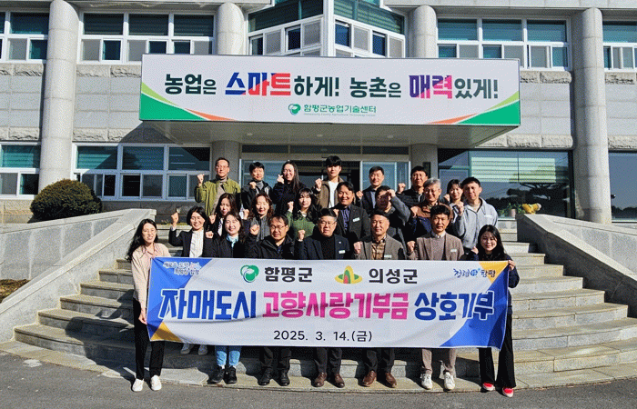 함평군은 16일 “자매결연을 맺은 함평군과 의성군이 함께 지난 14일 상호 고향사랑기부제에 기부하며 두 자치단체 간 협력관계를 더욱 견고히 했다”고 밝혔다.