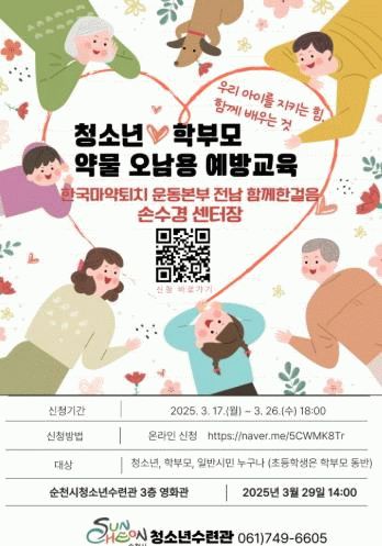 이번 특강은 최근 청소년들의 건강과 안전이 중요한 사회적 이슈로 대두되는 가운데, 지난해 11월 순천에 개관한 한국마약퇴치운동본부 전남지부의 ‘함께 한걸음센터’와 협력하여 진행된다.