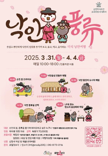 낙안풍류는 순천의 봄을 만끽할 수 있는 로컬 미식관광 상품으로, 봄 제철 식재료와 꽃을 주제로 순천의 다양한 관광자원을 ▲봄 ▲술 ▲맛 ▲정취 ▲소리 다섯 가지 테마와 결합한 프리미엄 미식투어다.