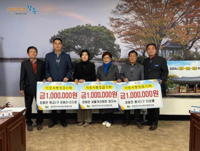 임연오 장동면장은 “지역사회의 나눔 활동에 적극 동참해 주심에 감사드리며, 기부자의 정성과 사랑이 이웃에게 큰 힘이 된다”며 감사의 인사를 전했다.