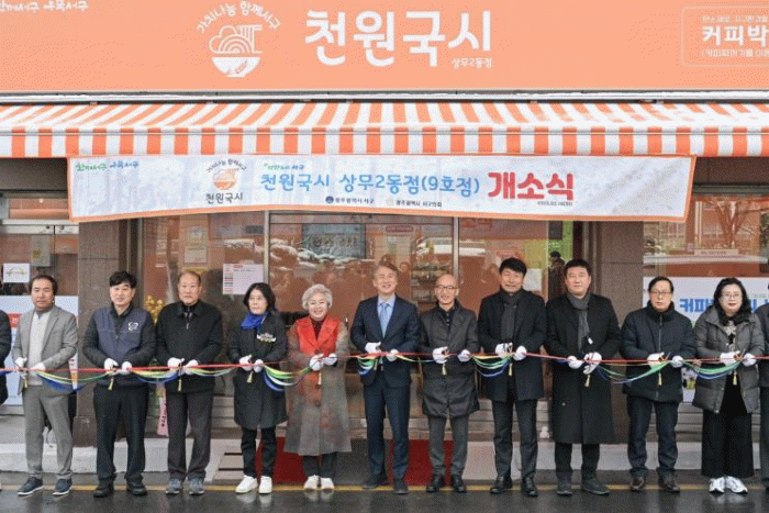 김이강 서구청장은 "천원국시 9호점이 단순히 지역 주민을 위해 착한 가격에 식사를 제공하는 것을 넘어 환경까지 생각하는 나눔 공간으로 자리매김할 수 있도록 지원을 아끼지 않겠다”고 말했다.