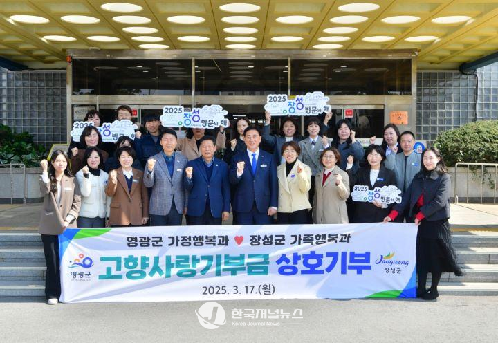 이번 상호 기부는 영광군 가정행복과와 장성군 가족행복과 직원 40여 명이 고향사랑기부제의 활성화와 상생 발전을 응원하며 기관 당 200만원을 상호 기부해 지역발전에 힘을 모았다.