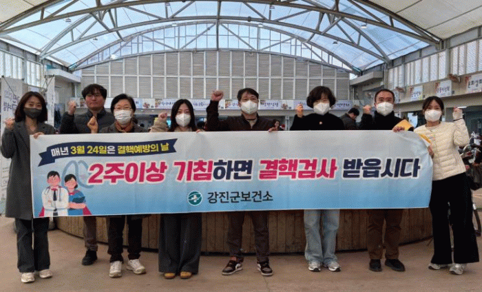 한준호 강진군 보건소장은 “결핵 예방 수칙 실천과 2주 이상 기침을 하면 검진을 받는 습관이 무엇보다 중요하다”며 “앞으로도 군민들의 건강을 위해 적극적인 홍보와 조기검진을 지속하겠다”라고 말했다