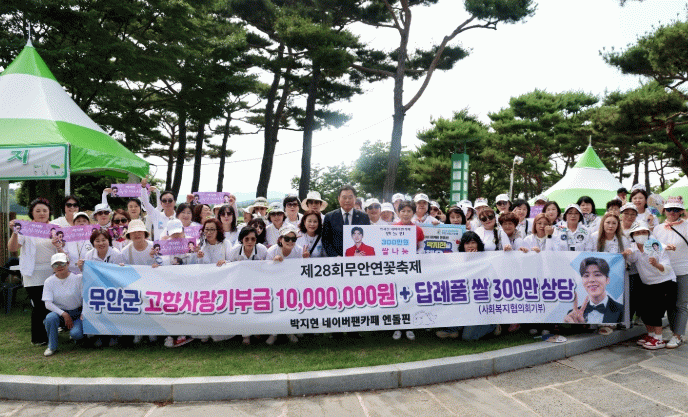 ‘엔돌핀’ 관계자는 “박지현 가수가 무안을 제2의 고향으로 생각하고 있으며 부모님께서도 지금 무안에 거주하고 계신다”며 “우리가 사랑하고 응원하는 가수가 무안연꽃축제를 빛낼 수 있어 기쁘고, 부모님이 계시는 무안군에 기부해 더 큰 의미가 있다고 생각한다”고 전했다.