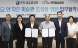 전라남도 윤규진 기자2025. 07.30[한국저널뉴스]전라남도교육청이 한국미술재단과 손잡고, 학교 안에 작은 미술관을 조성하는 사업을 본격 추진한다. 전남교육청과 한국미술재단은 29일 청사 비즈니스실에서 ‘학교 안 작은 미술관 사업을 위한 업무협약’을 체결하고, 학생들이 일상속에서 예술작품을 감상하며 창의력과 감수성을 키울 수 있도록 학교예술교육 기반을 구축하는 데 힘을 모으기로 했다. ‘학교 안 작은 미술관’은 학교 내 복도, 유휴 교실 등을 활용해 미술작품을 전시하는 것으로, 작품은 한국미술재단 소속 작가들의 기증으로 이뤄질 예정이다. 협약에 따라 한국미술재단…