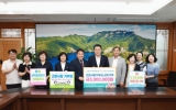 [한국저널뉴스]화순군(군수 구복규)은 이양청풍농협과 진도 서진도농협은 지난 18일 화순군청을 방문해 고향사랑기부금 상호기부 기탁식을 통해 지역 간 상생 의미를 되새겼다고 밝혔다. 이날 기탁식에는 구복규 화순군수를 비롯해 안상섭 이양청풍농협 조합장, 강성민 서진도농협 조합장, 최우영 농협 화순군지부장, 황지연 농협 진도군지부장 등 농협 임직원들이 참석해 화순군 고향사랑기부제 응원과 함께 상호 협력의 뜻을 교환했다. 이날 이양청풍농협과 서진도농협은 각각 300만 원씩 기부하며, 지역발전을 위한 따뜻한 나눔을 실천했다. 특히 이양청…