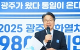 [한국저널뉴스]6·15남북공동성명 25주년을 기념해 운행하는 ‘광주평화열차’가 13일 오전 6시54분 355명의 탑승객을 태우고 효천역을 출발, 파주시 비무장지대(DMZ)로 향했다. 광주광역시는 이날 오전 광주평화열차 출발지인 남구 효천역 광장에서 ‘광주가 왔다, 통일이 온다’를 주제로 2025 광주평화열차 1980 트레인 출무식을 개최했다. 이날 출무식은 일일 명예역장으로 나선 강기정 시장을 비롯해 서용규 광주시의회 부의장, 김병내 남구청장이 대형 한반도기를 들고 입장하며 시작을 알렸다. 이후 인사말, 시민대표에게 80년대 …