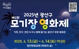 광산구 윤규진 기자2025. 06.11[한국저널뉴스]광주 광산구가 13일부터 14일까지 이틀간 첨단 쌍암공원에서 제2회 모기장 영화제를 운영한다. 모기장 영화제는 가족이 함께 즐길 수 있는 영화 상영을 통해 시민의 문화예술 향유 기회를 확대하고 먹거리 등 소비 촉진으로 지역 경제 활성화를 도모하고자 마련했다. 영화는 시민 설문조사를 통해 선정된 대중적으로 인기를 얻은 △코코(13일) △엘리멘탈(14일)이 선정됐다. 광산구는 300여 명이 앉을 수 있는 쌍암공원 희망의 숲에 공간을 마련했으며, 생수와 돗자리 등 영화 관람을 위해 편의 물품도 제공할 예정이다. 박병…