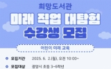 광양시 윤규진 기자2025. 05.30[한국저널뉴스]광양희망도서관은 어린이의 진로 설계를 돕기 위해 오는 6월부터 7월까지 매주 토요일 ‘미래 직업 대탐험’ 프로그램을 운영하며, 초등학교 3~6학년 어린이를 대상으로 수강생을 모집한다고 30일 밝혔다. 이번 프로그램은 도서관의 특화 주제인 ‘미래교육’의 일환으로, 디지털 환경 변화에 능동적으로 대응하고 다양한 직업을 체험하며 진로를 탐색할 수 있도록 기획됐다. 교육 운영은 진로직업체험 전문기관 ‘스카이교육’이 맡는다. 스카이교육은 실습 중심의 체험형 강의와 강좌별 전문 강사 구성으로 다수의 교육 프로그램을 성공적으로…