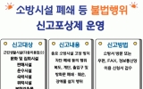 나주시 윤규진 기자2025. 05.16[한국저널뉴스]나주소방서는 소방시설 불법행위를 근절하고 자율적인 안전문화를 정착시키기 위해 연중 ‘불법행위 신고포상제’를 운영하고 있다고 밝혔다. 신고포상제는 다중이용업소, 대형마트, 전문점, 백화점, 쇼핑센터, 복합쇼핑몰, 판매시설, 숙박시설 등 총 9개 업종을 대상으로 하며, 소방시설을 고의로 폐쇄하거나 차단하는 행위(예: 소방시설 잠금 등)와 같은 소방 관련 불법행위를 신고할 수 있다. 신고는 국민신문고 또는 나주소방서 누리집을 통해 접수할 수 있으며, 신고 내용이 사실로 확인되고 지급 요건을 충족할 경우, 건당 5만 원 …