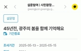 광주광역시 윤규진 기자2025. 05.16[한국저널뉴스]제45주년 5·18민주화운동을 맞아 광주시가 온라인 시민소통 플랫폼 ‘광주온(ON)’에서 진행한 특별이벤트에 시민들의 관심과 호응이 이어졌다. 광주광역시는 지난 13일부터 15일까지 광주온에서 ‘45년 전, 광주의 봄을 함께 기억해요’를 주제로 퀴즈 풀기 및 댓글 참여 이벤트를 진행, 총 5100여명의 시민이 참여했다. 시민들은 댓글을 통해 “5·18정신을 잊지 말고 기억하자”, “후손에게 전해야 할 역사” 등의 메시지부터 “초등학교 때 본 무섭고 슬픈 기억”과 같은 개인적 경험까지 다양한 소회를 공유했다. 또 …