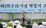 북구 윤규진 기자2025. 05.11[한국저널뉴스]광주 서구자원봉사센터가 10일 5·18 역사공원에서 ‘잊지 말아야 하는 이유’를 주제로 ‘제3회 책갈피 그리기 대회’를 개최했다. 이번 행사는 5·18 민주화운동의 의미를 되새기고 지역공동체 연대 의식을 강화하기 위해 마련됐으며, 김이강 서구청장을 비롯해 5·18 단체 회원, 자원봉사자, 서구민 등 250여 명이 참여했다. ‘책갈피 그리기’ 시간에는 참여자들이 5·18을 주제로 민주화의 의미를 책갈피에 그림으로 나타내고, ‘5·18 주먹밥 만들기’ 체험을 통해 연대와 나눔의 정신을 몸소 느끼는 시간을 가졌다. 또…