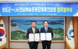 완도군 윤규진 기자2025. 04.30[한국저널뉴스]완도군과 (사)전남예술문화단체총연합회가 해양치유산업 활성화와 협회 회원들의 건강 증진을 위해 손을 맞잡았다. 협약식은 4월 28일 완도군청 상황실에서 진행됐으며, 신우철 완도군수와 임점호 전남예총 회장을 비롯한 관계자들이 참석했다. 업무 협약을 통해 해양치유산업과 전남지역 문화예술 발전을 위해 상호 협력하고 교류를 활성화하기로 했다. 협약의 주요 내용은 ▲해양치유산업 홍보 ▲(사)전남예술문화단체총연합회 소속 회원들의 건강 증진을 위한 해양치유 프로그램 운영 등에 대한 협조 체계 구축 ▲(사)전남예술문화단체총…