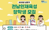 화순군 윤규진 기자2025. 04.25[한국저널뉴스]화순군은 4월 21일부터 5월 9일까지 '2025년 상반기 전남인재육성 3개 분야 장학생 신청을 인구청년정책과 평생교육팀에서 접수한다고 밝혔다. 전남인재육성 장학생 선발은 (재)전남인재평생교육진흥원에서 운영하며, 신청 자격은 학생 본인 또는 보호자(부 또는 모)가 공고일 현재 1년 이상 전남도 내에 주소를 둔 초등학생부터 대학생이다. 올해 장학생 선발 신청·접수는 희망하는 장학금 종류에 따라서 2곳 중 선택하여 접수하면 된다. 진흥원이 직접 선발하는 분야는 (재)전남인재평생교육진흥원 홈페이지에 온라인으로 접수하…
