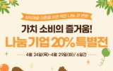 곡성군 윤규진 기자2025. 04.24[한국저널뉴스]곡성군는 곡성군 온라인 쇼핑몰인 ‘곡성몰’에서 관내 아이들을 정기적으로 후원하는 입점 업체를 대상으로 4월 24일부터 29일까지 6일간‘나눔 기업 20% 특별전’을 추진한다고 전했다. 곡성몰은 매월 특별한 주제로 기획전을 선보이고 있으며, 이번 행사에서는 쌀, 한우․한돈, 장어 등 총 41개 업체의 256개 품목이 20% 할인된 가격에 판매될 예정이다. 이를 통해 소비자들은 품질이 좋은 다양한 상품을 합리적인 가격에 만나볼 수 있다. 곡성군의 지원으로 운영되는 곡성몰은 소비자들에게 고품질 지역 특산품을 합리적인 가…