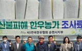 순천시 윤규진 기자2025. 04.11[한국저널뉴스]전국한우협회 순천시지부는 지난 10일 최근 산불로 큰 피해를 입은 경북 안동시의 한우농가를 돕기 위해 조사료(건초)를 긴급 지원했다고 밝혔다. 이번 산불로 안동 지역의 일부 한우농가에서는 축사 및 사료 저장 시설이 소실되고, 조사료 확보에 어려움을 겪고 있는 상황이다. 이에 전국한우협회 순천시지부는 피해 복구와 조속한 농가 정상화를 지원하고자 회원들의 자발적인 참여로 조사료를 모아 전달했다. 지원된 조사료는 총 75롤(시가 5백만원 상당) 규모로, 안동시 한우협회를 통해 피해 농가에 직접 전달되었으며, 현장에서는…