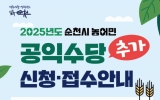 영광군 윤규진 기자2025. 04.11[한국저널뉴스]순천시는 오는 30일까지 농어민 공익수당 수급 자격요건을 모두 갖춘 농어민 중 지난 1차 신청․접수 기간 내 신청하지 못한 농어민을 대상으로, 주소지 관할 읍면동 행정복지센터에서 추가신청을 접수한다고 밝혔다. 신청 자격은 2024월 1일 1일 이전부터 전라남도에 주소가 있고, 2024년 1월 1일 이전에 경영체를 등록하고 농‧어‧업에 종사하고 있는 경영주이다. 다만, 다음에 해당하는 경우는 지급대상에서 제외된다. △2023년 농어업 외 종합소득 3,700만원 이상인 자 △2024년 직불금 등 보조금 부정수급자 △공…