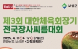 광양시 윤규진 기자2025. 04.10[한국저널뉴스] 보성군은 오는 11일부터 17일까지 7일간 보성다향체육관에서 ‘제3회 대한체육회장기 전국장사씨름대회’가 개최된다고 밝혔다. 이번 대회는 대한씨름협회가 주최하고 보성군체육회와 보성군씨름협회가 주관하며, 초등부부터 대학부, 여자부까지 총 933명의 선수가 출전해 개인전과 단체전에서 기량을 겨룬다. 개인전은 경장, 소장, 청장, 용장, 용사, 역사, 장사 등 7개 체급으로 진행되며, 예선전부터 8강까지는 단판제, 준결승과 결승전은 3판 2선승제로 운영된다. 모든 경기는 토너먼트 방식으로 펼쳐져 박진감 넘치…