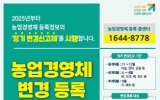 의회 윤규진 기자2025. 04.09[한국저널뉴스] 국립농산물품질관리원 전남지원 곡성·구례사무소는 농업경영체 정보의 정확도를 높이기 위해 4월부터 6월까지 벼·사과·배 등 하계작물 정기 변경 신고 기간을 운영한다. 농업경영체 등록 농업인은 공익직불 등 농업 관련 융자·보조 사업* 지원혜택을 받는 대신 농어업경영체법 제4조에 따라 변경등록의 의무가 주어진다. 이는 정확한 농업경영체 등록정보를 토대로 정책지원을 추진하고 농산물 수급 등 정책 기초자료로 활용하는 등 농정 발전의 선순환 구조를 만들기 위한 방안이다. 하지만 바쁜 영농활동과 의무에 대한 인식 …