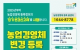 곡성군 윤규진 기자2025. 04.08[한국저널뉴스]국립농산물품질관리원 전남지원 곡성·구례사무소는 농업경영체 정보의 정확도를 높이기 위해 4월부터 6월까지 벼·사과·배 등 하계작물 정기 변경 신고 기간을 운영한다. 농업경영체 등록 농업인은 공익직불 등 농업 관련 융자·보조 사업 지원혜택을 받는 대신 농어업경영체법 제4조에 따라 변경등록의 의무가 주어진다. 이는 정확한 농업경영체 등록정보를 토대로 정책지원을 추진하고 농산물 수급 등 정책 기초자료로 활용하는 등 농정 발전의 선순환 구조를 만들기 위한 방안이다. 하지만 바쁜 영농활동과 의무에 대한 인식 부족 등으로 농업…