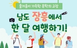 장흥군 윤규진 기자2025. 03.28[한국저널뉴스]장흥군이 3월 26일 부터 4월 11일까지 ‘장흥에서 한 달 여행하기’참가자를 모집한다고 밝혔다. ‘장흥에서 한 달 여행하기’사업은 장기 체류 여행자에게 여행경비를 지원하고 여행자는 개인 SNS 등을 통해 장흥 여행을 홍보하는 사업이다. 공고일 기준 광주·전남 외 주소지를 둔 관광객 중 장흥 여행을 희망하는 누구나 신청 가능하다. 참가자는 최소 7일에서 최대 30일 동안 전남 22개시군을 여행하면서 여행후기 작성, 만족도 조사 등 여행과제를 수행해야 한다. 여행을 하며 모든 과제 수행시 숙박비 5만원, 식비 4…