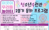 화순군 윤규진 기자2025. 03.20[한국저널뉴스]화순군은 20일 군립청소년수련관에서 '2025년 2분기 문화 프로그램 참가자 172명을 선착순 모집한다고 밝혔다. 이번 2분기 프로그램은 청소년들이 창의력과 자기 표현력을 키울 수 있도록 스포츠·요리·악기 등 다양한 분야의 강좌를 운영하며, 수련관 이용 청소년의 관심사와 요구를 반영했다. 수업은 ▲슬기로운 ‘스포츠’ ▲‘다트’ 챔피언 ▲맛있는 그림책 ‘리딩푸드’ ▲‘발레’ 꽃이 피었습니다 ▲‘체스’ 다이브 ▲‘도시락’ 만들어 봄 ▲스텝 바이 스텝 ‘클라이밍’ ▲상상 놀이터 ‘창의 미술’ ▲‘통기타’ 스타트 ▲‘마술…
