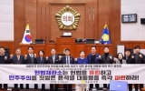 장성군 윤규진 기자2025. 03.19[한국저널뉴스]나주시의회는 3월 19일, 제268회 나주시의회(임시회) 제1차 본회의를 열고 ‘대한민국 민주주의와 헌정질서를 바로 세우기 위한 윤석열 대통령 탄핵 촉구 결의안’을 만장일치로 채택했다. 이번 결의안을 대표 발의한 김강정 의원은 “12·3 비상계엄은 국회의 기능을 마비시키고, 국민의 정치적 자유를 억압하려 한 중대한 범죄 행위이며, 이로 인해 대한민국은 극심한 정치적 혼란에 빠졌으며, 국제 사회에서도 민주주의 국가로서의 신뢰를 잃었을 뿐 아니라 주요 경제 지표가 급락하고, 외국인 투자자들이 대한민국 시장에서 이탈하는 …