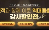 화순군 윤규진 기자2025. 11.24[한국저널뉴스]화순군은 올해 화순팜 온라인 쇼핑몰 창설 이래 역대 최고 매출 달성에 보답하고자, 이달 24일부터 다음 달 5일까지 12일간'고객과 함께 이룬 역대 매출! 감사 할인전' 이벤트를 추진한다고 밝혔다. 이번 행사는 김장철, 연말 모임 행사 등 겨울나기를 겨냥한 특별 기획전으로 준비했다. 전 품목 20% 할인 쿠폰을 회원당 5매씩 지급하며, 축산물 ‘내 사랑 고기’ 코너를 통해 5% 추가 할인하는 등 일부 품목은 평상시보다 최소 25% 이상 저렴하게 구매할 수 있다. 또, 국거리 재료, 탕 제품 등을 모아 ‘뜨끈…