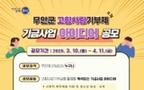 무안군 윤규진 기자2025. 03.11[한국저널뉴스]전남 무안군은 오는 4월 11일까지 전 국민을 대상으로 고향사랑기부제 기금사업 아이디어 공모전을 진행한다. 이번 아이디어 공모전은 12·29 여객기 참사로 인해 침체한 지역경제를 활성화하고 기부자들의 공감을 얻을 수 있는 기금사업을 발굴하고자 전 국민을 대상으로 하여 공개 모집으로 진행된다. 공모 분야는 ▲사회적 취약계층 지원 및 청소년 육성‧보호 ▲지역 주민의 문화‧예술‧보건 등 증진 ▲시민참여, 자원봉사 등 지역공동체 활성화 지원 ▲그 밖에 주민의 복리 증진에 필요한 사업이다. 참가 대상은 무안군의 발전에 관…