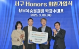 서구 윤규진 기자2025. 03.07[한국저널뉴스]광주광역시 서구는 6일 서구청 1층 기부자 명예의 전당에서 광주사회복지공동모금회와 함께 상무옥숯불갈비 박창수 대표의 서구아너스 가입식을 개최했다. 이번 가입식에서 박창수 대표는 5년간 매년 600만원씩 총 3천만원을 후원하기로 약정했다. 이 후원금은 ‘복지 사각지대 없는 12달이 행복한 착한도시 서구’조성을 위해 쓰일 예정이다. 박 대표는 2019년부터 서구와 협약을 맺고 저소득 청소년들의 재능개발과 꿈을 지원하는 ‘희망플러스 인재육성 사업’에 꾸준히 참여해왔다. 그는 “사업을 통해 얻은 수익을 지역사회에…