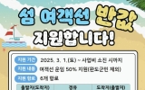 문화 윤규진 기자2025. 03.05[한국저널뉴스]완도군은 ‘2025 완도 방문의 해’를 맞아 3월 1일부터 관광객 유치와 지역 경제 활성화를 위해 섬 여객선 반값 운임 지원 사업을 추진한다. 지원 대상은 완도를 찾는 관광객으로 완도군에 주민등록을 두고 있지 않은 일반인이 해당된다. 이용 방법은 청산, 노화, 소안, 보길도 여객선 이용 시 선사가 신고한 운임에서 50%를 자동으로 할인받을 수 있다. 여객선 반값을 지원받을 수 있는 항로는 완도-청산, 완도-여서, 땅끝-산양, 땅끝-넙도, 화흥포-동천-소안 등 6개이다. 단, 월별 지원 예산에 한도가 있어 예산 …