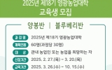 영광군 윤규진 기자2025. 03.04[한국저널뉴스] 영광군은 합리적인 농장경영 및 과학영농 실천능력을 갖춘전문농업경영인을 양성하기 위하여 '제18기 영광농업대학(양봉반, 블루베리반)' 신입생을 3월 20일까지 모집한다고 밝혔다. 올해 추진하는 영광농업대학은 3월 입학을 시작으로 10월까지 주 1회, 4시간씩 진행하며 총 20회 79시간으로 운영된다. 농번기에는 과정별로 방학을 1회(4~8월) 실시하여 탄력적인 운영으로 수강생에게 편의를 제공한다. 또한 올해는 양봉반, 블루베리반 두 과정으로 운영되며, 계절별 사양관리·블루베리 재배생리·병해충 관리법 등의 …