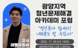 광양시 윤규진 기자2025. 11.21[한국저널뉴스]광양시는 순천대학교 ‘글로컬대학30 사업’과 연계해 오는 11월 26일 오후 2시, 광양청년꿈터에서 ‘2025 광양지역 청년 문제 해결 아카데미 포럼’을 개최한다고 밝혔다. 순천대학교는 지역 청년이 직면한 문제를 진단하고 협력적 해법을 찾기 위해 지난 10월 순천을 시작으로 11월 광양, 12월 고흥에서 연속 포럼을 진행 중이다. 이번 포럼은 복지·문화 분야 논의를 중심으로 구성됐다. 이는 지난 9월 순천대학교가 광양·순천·고흥 청년을 대상으로 실시한 설문조사에서 광양 청년의 45%가 ‘복지·문화 분야’를 가장…