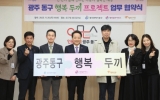 해남군 윤규진 기자2025. 11.21[한국저널뉴스]광주 동구는 20일 행복나래㈜, 행복도시락 사회적협동조합과 ‘행복두끼 프로젝트’ 업무협약을 체결했다고 밝혔다. ‘행복두끼 프로젝트’는 아동 결식 해결을 위해 민관이 협력해 사회안전망을 구축하는 사회공헌 프로그램으로, 광주 동구는 지원이 필요한 아동을 발굴하고 기업에서는 결식 우려 아동 40명을 대상으로 1년 동안 1만 400여 식의 행복도시락을 제공할 예정이다. 동구는 이번 협약을 시작으로 2026년 1~2월 대상자를 선정해 3월부터 본격적으로 사업을 추진할 예정이며, 결식 우려 아동을 일시적으로 돕는 것에 그치…