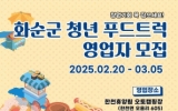 화순군 윤규진 기자2025. 02.21[한국저널뉴스]화순군은 지난 20일 화순군에 거주하는 청년들에게 푸드트럭을 이용하여 창업할 수 있도록 푸드트럭 지원 사업자를 모집한다고 밝혔다. 신청 자격은 공고일 기준 화순군 관내 주민등록이 되어 있는 18세 이상 49세 이하인 청년으로 푸드트럭 영업 신고와 운영을 할 수 있는 자다. 지원 규모는 푸드트럭 1대, 1천6백만 원까지 개조 비용을 지원할 예정이며, 운영 장소는 한천 휴양림 내 오토캠핑장이다. 신청은 2월 20일부터 3월 5일까지 공모신청서·사업계획서·운전면허증 사본·주민등록초본·개인정보 수집·이용 동의서 등을 준…
