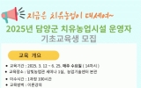 담양군 윤규진 기자2025. 02.20[한국저널뉴스]담양군은 치유농업에 대한 이해와 체계적인 치유농업 서비스 제공을 위한 ‘치유농업시설 운영자 교육’을 오는 3월부터 6월까지 운영한다. 이번 교육은 치유농업에 관심이 있는 관내 농업인 30명을 대상으로 담빛농업관 세미나1실과 농업기술센터 본관에서 진행되며, 오는 3월 20일 개강식을 시작으로 6월 25일까지 총 14회 과정으로 진행된다. 교육은 ▲치유농업의 이해 ▲치유농업 자원의 이해 ▲치유농업시설 준비 ▲치유농업 프로그램 운영 ▲치유농업시설 운영 등으로 구성해 치유농업시설 운영자에게 필요한 소양과 전문 능력을 …