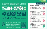 광주광역시 윤규진 기자2025. 02.05[한국저널뉴스]광주광역시립도서관(무등‧사직‧산수)은 오는 3월부터 5월까지 시민을 대상으로 20개의 독서문화 강좌를 운영한다. 무등도서관은 성인을 대상으로 ▲고전강독-맹자집주 ▲한자교실 ▲누구나 쉽게 사주명리학 ▲서예교실 ▲민화교실 ▲한국화교실 ▲펜 하나로 시작하는 일상드로잉 ▲팝송으로 입문하는 영어회화 ▲통기타 여행 등 9개 강좌를 운영한다. 사직도서관은 성인을 대상으로 ▲내 삶이 시가 되는 창작교실 ▲스마트 시니어교실 ▲시민한문교실 ▲양림을 그리다 ▲감탄 캘리그라피 5개 강좌를, 어린이를 대상으로 ▲인물로 만나는 우리 역사 …