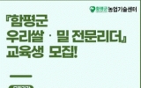 전라남도 윤규진 기자2025. 01.23[한국저널뉴스] 전남 함평군이 2025년 우리쌀‧밀 가공식품 활용 전문교육 ‘함평군 우리쌀‧밀 전문리더’ 교육생을 모집한다. 함평군 농업기술센터는 22일 “함평군 우리쌀‧밀 전문리더 교육이 내달 11일부터 27일까지 총 6회 함평군 농업기술센터에서 진행된다”고 밝혔다. 교육은 쌀과 밀의 소비 촉진을 위해 지역 전문 리더 육성을 목표로 마련됐으며 이론 강의와 함께 우리쌀‧밀을 활용한 실습 교육으로 구성돼 참가자들이 우리 쌀과 밀에 대한 이해와 활용 능력을 향상시키는데 중점을 둔다. 교육 신청은 내달 6일까지 가능하며 선…