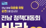 전라남도 윤규진 기자2025. 11.19[한국저널뉴스]전라남도는 29일 동부지역본부에서 경제 타운홀 미팅인 ‘전남 청책대동회 바란(2차)’을 개최키로 하고 21일까지 정책 제안서를 받는다고 밝혔다. 지난 9월 전남도청에서 개최했던 1차 행사처럼, 강위원 경제부지사와 정책 제안자가 직접 만나 정책 제안을 청취하고 의견을 나누는 열린 토론장으로 마련된다. 전남 청책대동회 바란은 보편적, 공개적, 무제한적 소통을 하기 위해 남녀노소, 거주지역, 주제 범위 제한 없이 내·외빈 축사와 격려사, 마이크 독점이 없는 ‘3무’를 원칙으로 혁신적 창의와 비판적 지혜를 모으는 자리다.…