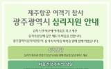 광주광역시 윤규진 기자2025. 01.05[한국저널뉴스]광주광역시는 제주항공 여객기 참사에 의한 심리적 충격을 완화하고 일상의 회복을 돕기 위해 심리지원을 강화한다. 심리지원단을 운영 중인 광주시는 재난심리지원 교육을 이수한 광역·기초 정신건강복지센터 전문가 140명을 투입해 유가족, 참사 목격자, 시민 등을 대상으로 심리회복을 지원한다. 광주시는 재난을 경험한 누구나 공포·슬픔·불안·분노 등 다양한 형태의 감정을 경험할 수 있고, 악몽이나 현장 장면의 반복적 떠오름 등 트라우마 반응, 피로·지침·집중력 및 판단력 저하 등의 심리적 반응이 나타날 수 있는 만큼 심리…